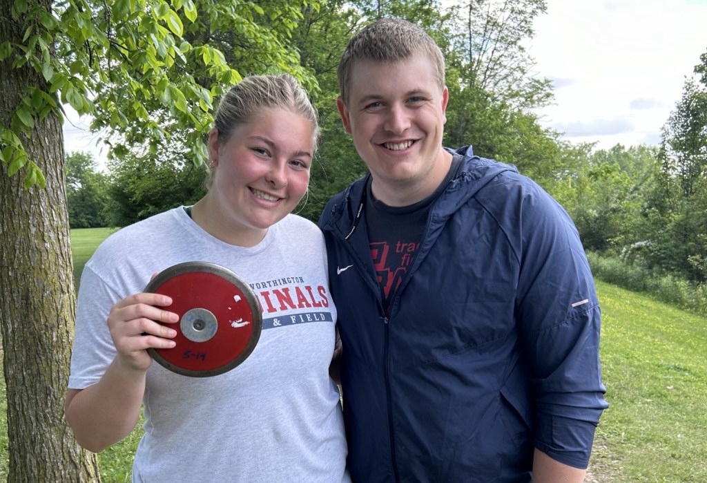 With the spring outdoor season now underway, Olsen is shifting her focus to discus. Her goal: to break the current outdoor discus record at Thomas Worthington, which stands at 127 feet, nine inches. With her personal best already at 123 feet, three inches, Olsen is confident that breaking the record is within reach from the very start.